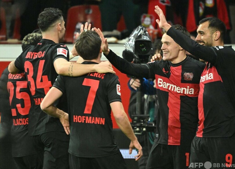 【3月11日 AFP】23-24ドイツ・ブンデスリーガ1部は10日、第25節の試合が行われ、首位バイヤー・レバークーゼン(Bayer Leverkusen)は10人のVfLボルフスブルク(VfL Wolfsburg)に2-0で勝利し、リーグ初優勝へ前進した。