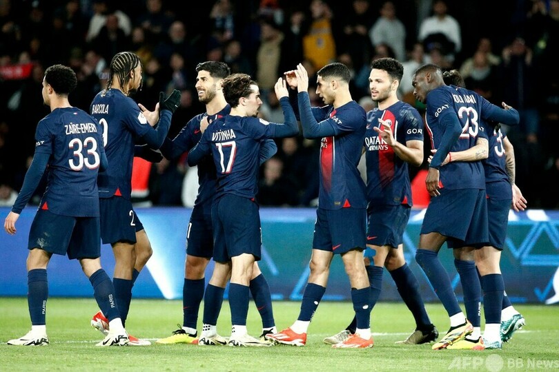 【4月22日 AFP】23-24フランス・リーグ1は21日、第30節の試合が行われ、パリ・サンジェルマン(Paris Saint-Germain、PSG)は4-1でオリンピック・リヨン(Olympique Lyon)に大勝し、リーグ優勝まであと一歩に迫った。