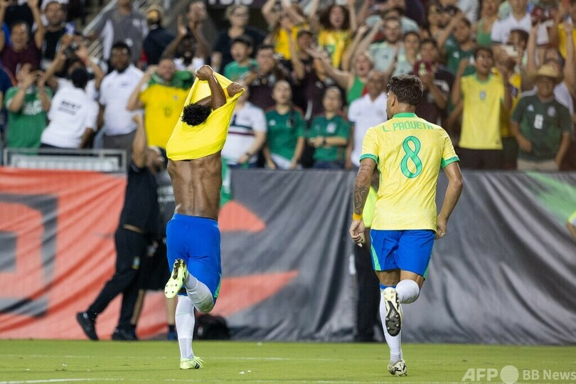 【6月9日 AFP】サッカー国際親善試合は8日、米テキサス州カレッジステーション(College Station)で行われ、ブラジルは3-2でメキシコに勝利。17歳のエンドリッキ(Endrick)が後半アディショナルタイムに頭で決勝点を挙げた。