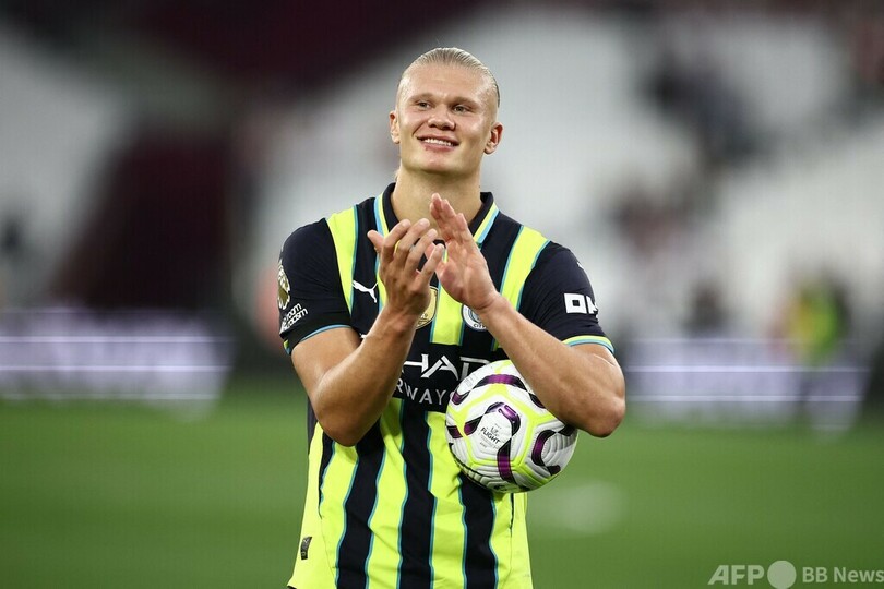 【9月1日 AFP】24-25イングランド・プレミアリーグは31日、第3節の試合が行われ、王者マンチェスター・シティ(Manchester City)はアーリング・ブラウト・ハーランド(Erling Braut Haaland)が2試合連続でハットトリックを達成し、ウェストハム(West Ham)に3-1で勝利して暫定首位に立った。