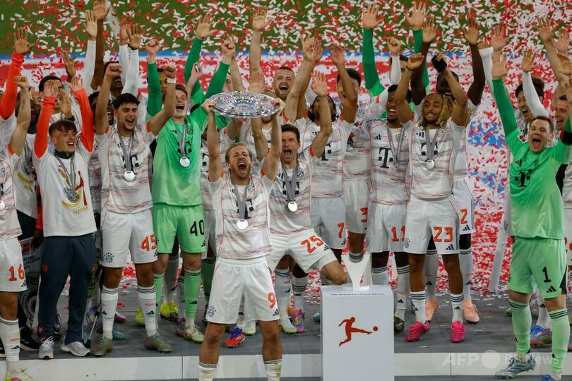 【5月11日 AFP】24-25ドイツ・ブンデスリーガ1部は10日、第33節の試合が行われ、バイエルン・ミュンヘンはボルシア・メンヘングラッドバッハに2-0で勝利。ハリー・ケインはキャリア初のタイトル獲得を喜び、ベテランのトーマス・ミュラーはクラブでの最後のホームゲームに出場した。