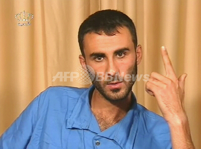 【ヨルダン 24日 AFP】23日、アルカイダ(Al-Qaeda) のメンバーとされるイラク国籍のZiad Khalaf al-Karbuli容疑者の映像が、ヨルダンのテレビで放映された。ヨルダン情報部隊と特別部隊の共同作戦で、イラクから連れ出されたal-Karbuli容疑者は、その後逮捕された。同氏は2005年イラクで起こったヨルダン人運転手殺害ならびに2人のモロッコ大使館職員の拉致事件について容疑を認めているという。写真は23日に放映された、ヘリコプターの中でヨルダン特別部隊にとり囲まれているal-Karbuli容疑者。(c)AFP