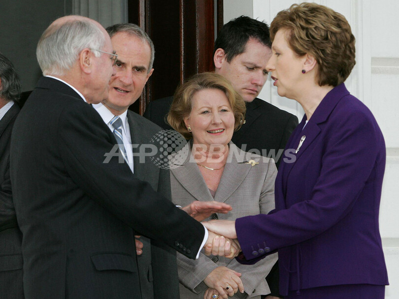 ニュース 政治・経済 ハワード豪首相、アイルランドを公式訪問 - アイルランド 2006年5月24日 0:50 発信地:アイルランド [ ヨーロッパ アイルランド ] このニュースをシェア ‹ › ❮ 3/4 ❯ 写真はハワード首相(左)、マカリース大統領(右)、マーティン・マカリース(%%Martin McAleese%%)氏(左から2人目)、ハワード首相夫人。(c)AFP/FRAN CAFFREY 画像作成中 ! 【ダブリン/アイルランド 24日 AFP】4日間の日程でアイルランドを公式訪問中のジョン・ハワード(John Howard)豪首相は、最終日となった23日、ダブリン(Dublin)の大統領官邸でメアリー・マカリース(Mary McAleese)大統領と会談した。写真はハワード首相(左)とマカリース大統領。(c)AFP/FRAN CAFFREY 政治・経済 一覧へ> メディア・報道関係・法人の方向け 写真・動画 購入のお問合せ>
