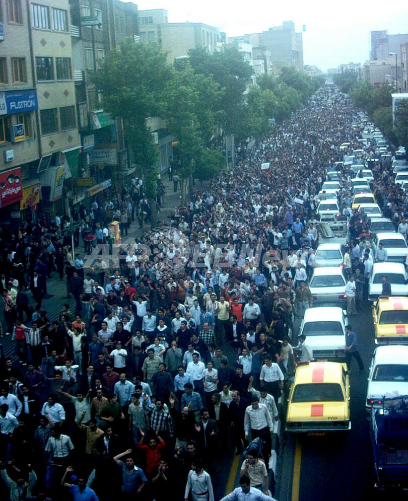 【タブリーズ/イラン 24日AFP】イラン北西部の主要都市タブリーズ(Tabriz)で22日、数千人のアゼルバイジャン人が参加してイランの新聞に対する抗議デモが行われた。政府による全国紙は、アゼルバイジャン人をゴキブリに見立てた漫画の掲載号で発行禁止を受け、記者2人が逮捕された。アゼルバイジャン人の人口は、旧ソ連のアゼルバイジャン国内よりイラン領内に多く、中でもイラン北西部に集中しており、総人口の25%を占める。ストックホルムに拠点を置く「Azerbaijan Youths Association for Freedom」提供の写真は23日、タブリーズで行われたデモの様子。(c)AFP