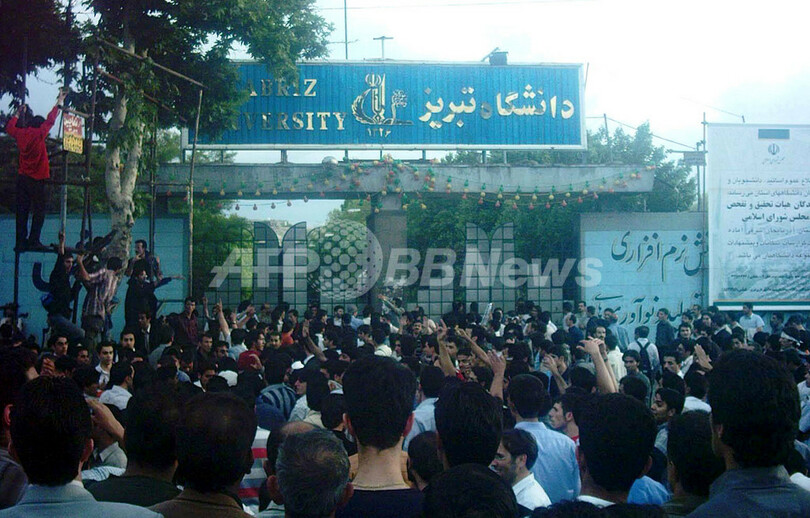 【タブリーズ/イラン 24日AFP】イラン北西部の主要都市タブリーズ(Tabriz)で22日、数千人のアゼルバイジャン人が参加してイランの新聞に対する抗議デモが行われた。政府による全国紙は、アゼルバイジャン人をゴキブリに見立てた漫画の掲載号で発行禁止を受け、記者2人が逮捕された。アゼルバイジャン人の人口は、旧ソ連のアゼルバイジャン国内よりイラン領内に多く、中でもイラン北西部に集中しており、総人口の25%を占める。ストックホルムに拠点を置く「Azerbaijan Youths Association for Freedom」提供の写真は23日、タブリーズで行われたデモの様子。(c)AFP
