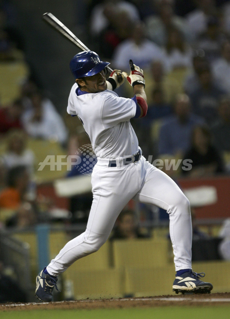 【カリフォルニア/米国 23日 AFP】MLB、コロラド・ロッキーズ(Colorado Rockies)vsロサンゼルス・ドジャース(Los Angeles Dodgers)。ドジャースのケニー・ロフトン(Kenny Lofton)は、この試合5打数3安打2打点の活躍でチームの勝利に貢献。試合は8-1でドジャースがロッキーズを降し、連勝を6に伸ばした。(c)AFP/Getty Images Robert Laberge
