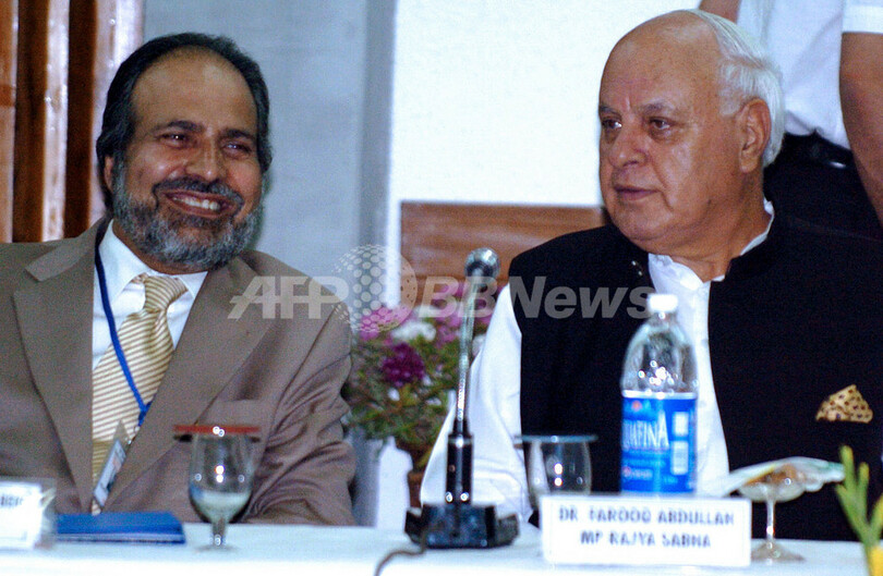 【スリナガル/インド 24日 AFP】カシミール(Kashmir)州の州都スリナガル(Srinagar)で24日、マンモハン・シン(Manmohan Singh)首相は、カシミール州の野党第一党、ジャム・カシミール民族協議会(National Conference)のOmar Abdullah総裁と人民民主党(PDP)のMehbooba Mufty総裁を交えた円卓会議に出席した。シン首相の国民会議派(Congress Party)は3年半にわたり同州を統治してきた。シン首相の到着に合わせてゼネストやボイコットが行われ、暴動も発生したものの、首相は2日間の和平会談を「重要な第一歩」であると言明した。写真は、円卓会議に出席したAbdullah総裁(左)とMufty総裁。(c)AFP/Tauseef MUSTAFA