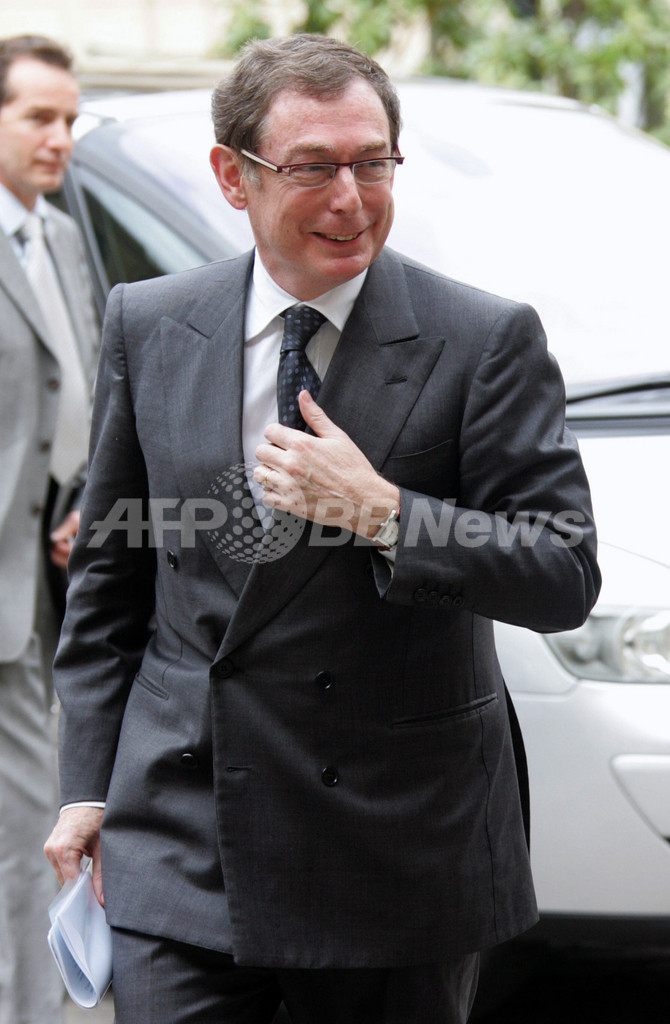 【パリ/フランス 25日 AFP】ドミニク・ドビルパン(Dominique de Villepin)首相とジェラール・ラルシェ(Gerard Larcher)雇用・労働・若年者就職担当相はパリで24日、欧州の航空防衛宇宙大手EADSのアルノー・ラガルデール(Arnaud Lagardere)共同会長およびノエル・フォルジャール(Noel Forgeard)共同最高経営責任者と会談した。写真は会談を終え、会場の首相府(Matignon hotel)を後にするラガルデール氏(右)とフォルジャール氏。(c)AFP/JACK GUEZ
