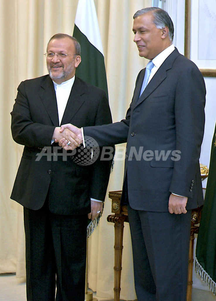 ニュース 政治・経済 イラン外相が公式訪問、アジズ首相と会談 - パキスタン 2006年5月25日 3:59 発信地:パキスタン [ アジア・オセアニア パキスタン ] このニュースをシェア ‹ › ❮ 5/6 ❯ 写真は、握手をするシャウカット・アジズ(%%Shaukat Aziz%%)首相(右)とモッタキ外相。(c)AFP/Aamir QURESHI 画像作成中 ! 【イスラマバード/パキスタン 25日 AFP】イランのマヌーチェフル・モッタキ(Manouchehr Mottaki)外相は24日、公式訪問のためイスラマバード(Islamabad)に到着した。この訪問で同外相は、2日間にわたって開かれる共同経済プロジェクトの会合に出席する。写真は、会談するシャウカット・アジズ(Shaukat Aziz)首相(右)とモッタキ外相。(c)AFP/Aamir QURESHI 政治・経済 一覧へ> メディア・報道関係・法人の方向け 写真・動画 購入のお問合せ>