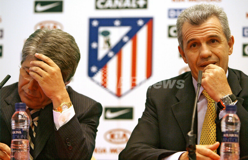 【マドリード/スペイン 24日 AFP】サッカー、スペイン・リーガエスパニョーラのアトレティコ・マドリード(Atletico Madrid)は、マドリードにあるクラブ本部で記者会見を開き、メキシコ代表監督を務め、同リーグのオサスナ(Osasuna)を今季4位へと躍進させたハビエル・アギーレ(Javier Aguirre)氏の新監督就任を発表した。アトレティコ・マドリードとの契約は1年間となっている。写真は、報道陣の質問に答えるアギーレ氏。(c)AFP/PIERRE-PHILIPPE MARCOU