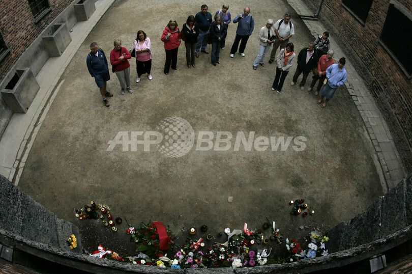 【オシフィエンチム/ポーランド 25日 AFP】ローマ法王ベネディクト16世(Pope Benedict XVI)のポーランド訪問を控えた24日、ナチスのアウシュビッツ(Auschwitz)強制収容所跡を訪れた人々が花やロウソクを手向けた。法王はアウシュビッツ、ビルケナウ(Birkenau)の強制収容所跡を訪れる予定となっている。写真は同日、アウシュビッツ強制収容所内の処刑場で花とロウソクを手向ける訪問者。(c)AFP/JOE KLAMAR