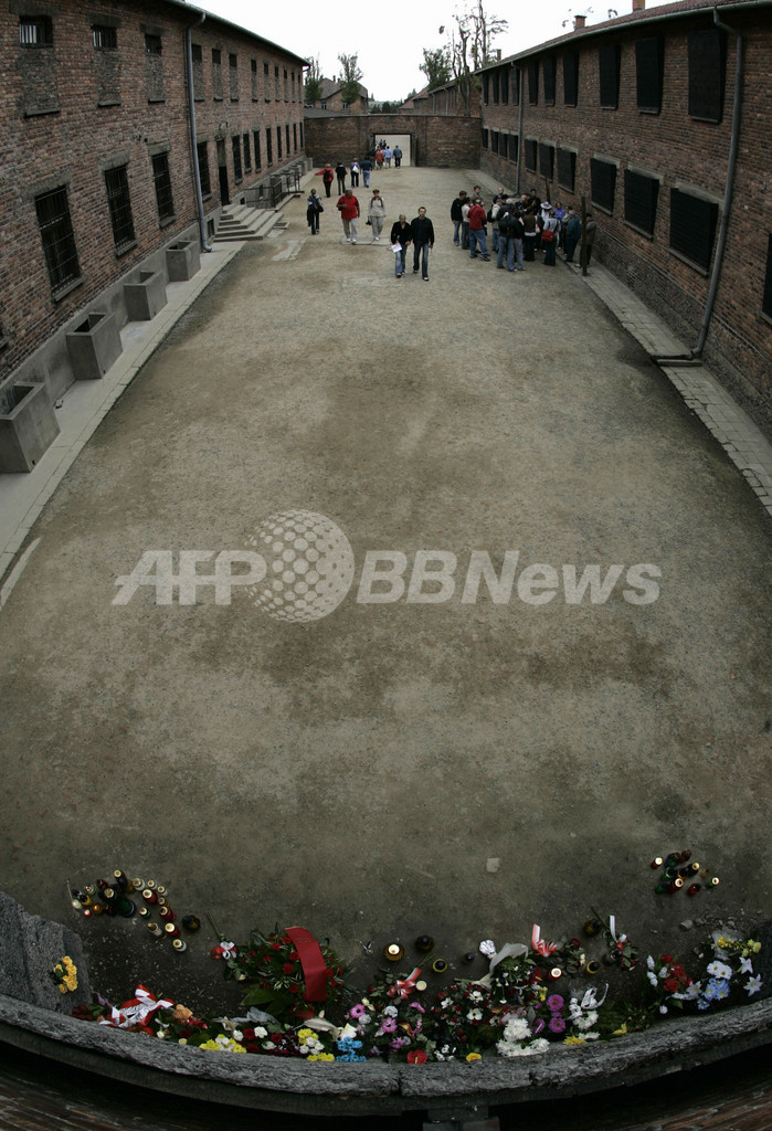 【オシフィエンチム/ポーランド 25日 AFP】ローマ法王ベネディクト16世(Pope Benedict XVI)のポーランド訪問を控えた24日、ナチスのアウシュビッツ(Auschwitz)強制収容所跡を訪れた人々が花やロウソクを手向けた。法王はアウシュビッツ、ビルケナウ(Birkenau)の強制収容所跡を訪れる予定となっている。写真は同日、アウシュビッツ強制収容所内の処刑場で花とロウソクを手向ける訪問者。(c)AFP/JOE KLAMAR