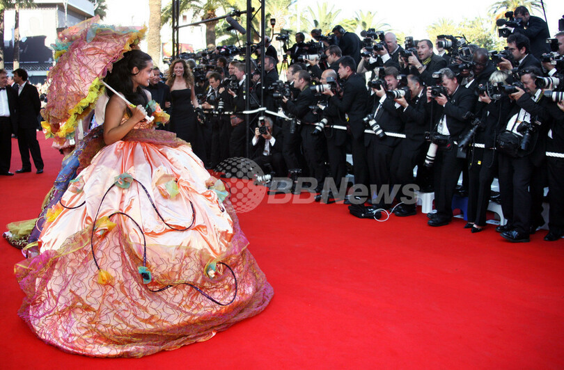 【カンヌ/フランス 26日 AFP】17日から28日まで開催される第59回カンヌ国際映画祭(59th Cannes Film Festival)で24日、ソフィア・コッポラ(Sofia Coppola)監督によるコンペティション部門出品作「マリー・アントワネット(Marie-Antoinette)」のプレミア上映に合わせ、会場の外では衣装を身に纏った俳優らによるパフォーマンスが行われた。同映画は、2004年に「ロスト・イン・トランスレーション(Lost in Translation)」でアカデミー賞最優秀オリジナル脚本賞を受賞したコッポラ監督の最新作である。中盤に差し掛かった同映画祭で、コンペティション部門の20の出品作品のうちどの作品が最高賞であるパルム・ドール(Palme d’Or)を獲得するか、批評家の意見は万別で予測がつかないでいる。(c)AFP/FRANCOIS GUILLOT