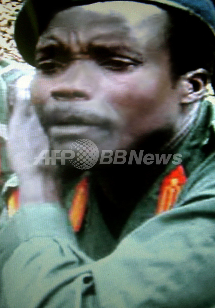 【Kampala/ウガンダ 24日 AFP】 ウガンダの主要反政府勢力である「神の抵抗軍」(Lord Resistance Movement、LRM)の指導者ジョゼフ・コニー(Joseph Kony)容疑者が20年近くに及ぶ血なまぐさい紛争を終結したい意向であることが、24日に発見された同容疑者に関する極めてまれなビデオで明らかになった。国際指名手配されている同容疑者と、紛争終結に向け仲裁を試みる南部スーダンの自治政府が5月中旬に開いた会合の模様を収録したDVDで、同容疑者は、政府との和平の用意があると語っている。写真は、Kampalaのメディアグループ「モニター」が24日入手したコニー容疑者の様子。(c)AFP