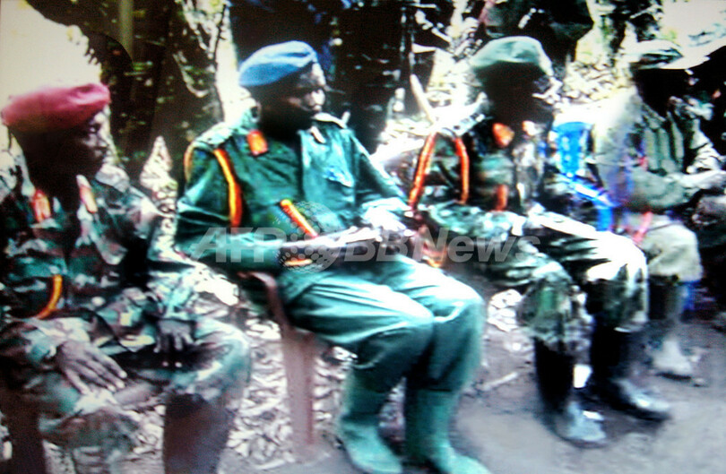 【Kampala/ウガンダ 24日 AFP】 ウガンダの主要反政府勢力である「神の抵抗軍」(Lord Resistance Movement、LRM)の指導者ジョゼフ・コニー(Joseph Kony)容疑者が20年近くに及ぶ血なまぐさい紛争を終結したい意向であることが、24日に発見された同容疑者に関する極めてまれなビデオで明らかになった。国際指名手配されている同容疑者と、紛争終結に向け仲裁を試みる南部スーダンの自治政府が5月中旬に開いた会合の模様を収録したDVDで、同容疑者は、政府との和平の用意があると語っている。写真は、Kampalaのメディアグループ「モニター」が24日入手したコニー容疑者の様子。(c)AFP