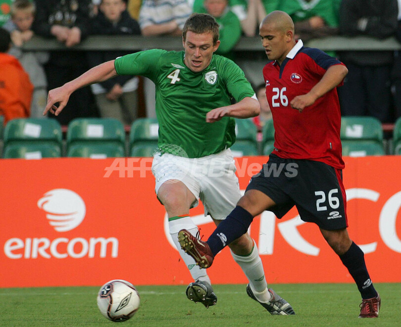 スポーツ サッカー <サッカー 親善試合>アイルランド チリに敗れる - アイルランド 2006年5月25日 8:59 発信地:アイルランド [ ヨーロッパ アイルランド ] このニュースをシェア ‹ › ❮ 6/7 ❯ 写真は、アイルランドのリチャード・ダン(%%Richard Dunne%%、左)と競り合うチリのウンベルト・スアソ(%%Humberto Suazo Pontivo%%)。(c)AFP/FRAN CAFFREY 画像作成中 ! 【ダブリン/アイルランド 24日 AFP】サッカー・親善試合、アイルランドvsチリ。チリのホルヘ・バルガス・パラシオス(Jorge Vargas Francioso、中央)は、アイルランドのダミアン・ダフ(Damien Duff)に突破を許す。試合は1-0でアイルランドが敗れる。(c)AFP/FRAN CAFFREY サッカー 一覧へ> メディア・報道関係・法人の方向け 写真・動画 購入のお問合せ>