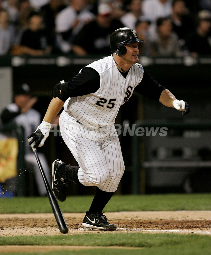 【イリノイ/米国 24日 AFP】MLB、オークランド・アスレチックス(Oakland Athletics)vsシカゴ・ホワイトソックス(Chicago White Sox)。ホワイトソックスの先発マーク・バーリー(Mark Buehrle)は、7回を被安打6失点1に抑える好投をみせ今季6勝目を挙げた。試合は3-2でホワイトソックスが勝利を収め、3連勝を飾った。(c)AFP/Getty Images Jonathan Daniel