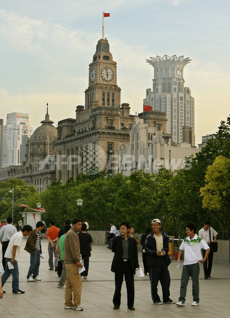 【上海/中国 26日 AFP】上海の黄浦江(ホアンプージャン)(Huangpu river)の堤防にある歴史に残るブンド(Bund)の通りには、19世紀のヨーロッパ風の建物が立ち並ぶ。『中国のウォール街』(China’s Wall St)として知られていたこの周辺には、17の異なった建築様式で建てられた24の構造からなる建物が現存する。写真は、24日、上海の歴史のあるブンド通りの歩道を歩く観光客。(c)AFP/Mark Ralston