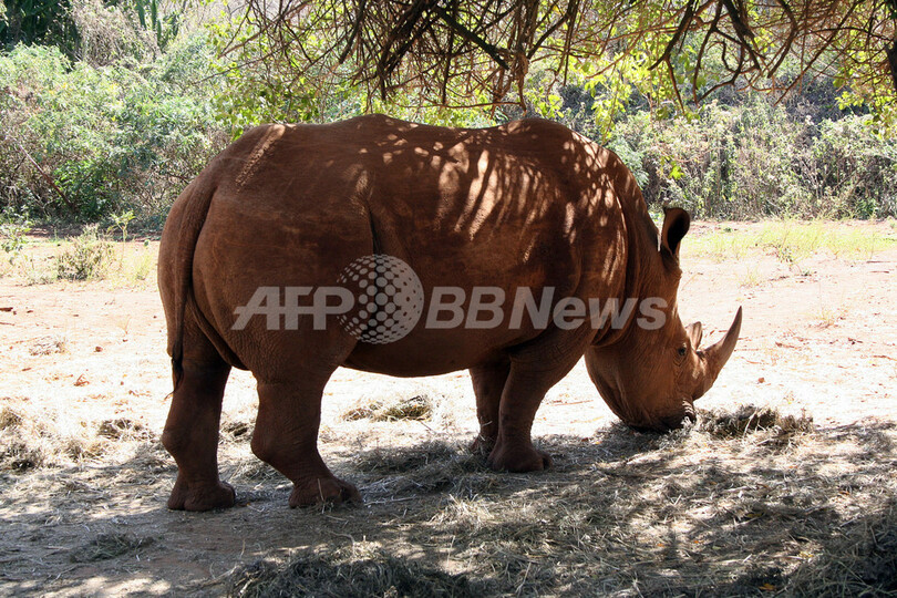 【ツァボ/ケニア 26日 AFP】ケニア野生生物庁(KWS)が26日に発表した報告によると、ナイロビ(Nairobi)の約300キロ南にあるツァボ・イースト国立公園(Tsavo East National Park)で、クロサイの角を狙った密漁が行われ、少なくとも2頭が犠牲となっている。2頭の死骸を回収したレンジャー隊員が公園内で密猟者を追跡中。写真は25日、ツァボ・イースト国立公園内で撮影された黒サイ。(c)AFP