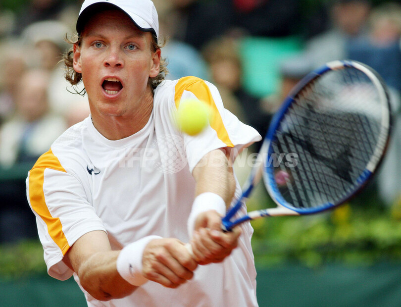 【デュッセルドルフ/ドイツ 25日 AFP】テニス、ARAGワールド・チーム・カップ(Arag World Team Cup)、レッド・グループ、ドイツvsチェコ。ドイツのフィリップ・コールシュライバー(Philipp Kohlschreiber)/アレクサンダー・バスケ(Alexander Waske)組は、第3戦でチェコのトマス・ベルディハ(Tomas Berdych)/レオシュ・フリエドル(Leos Friedl、左)組と対戦し、コールシュライバー/バスケ組がセットカウント2-1(6-4、6(2)-7、10-5)で勝利した。試合はドイツが2-1でチェコを破り、対戦成績を3勝0敗とし決勝進出を決めた。(c)AFP/PATRIK STOLLARZ