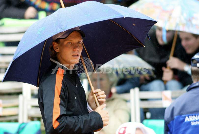【デュッセルドルフ/ドイツ 25日 AFP】テニス、ARAGワールド・チーム・カップ(Arag World Team Cup)、レッド・グループ、ドイツvsチェコ。ドイツのフィリップ・コールシュライバー(Philipp Kohlschreiber)/アレクサンダー・バスケ(Alexander Waske)組は、第3戦でチェコのトマス・ベルディハ(Tomas Berdych)/レオシュ・フリエドル(Leos Friedl、左)組と対戦し、コールシュライバー/バスケ組がセットカウント2-1(6-4、6(2)-7、10-5)で勝利した。試合はドイツが2-1でチェコを破り、対戦成績を3勝0敗とし決勝進出を決めた。(c)AFP/PATRIK STOLLARZ