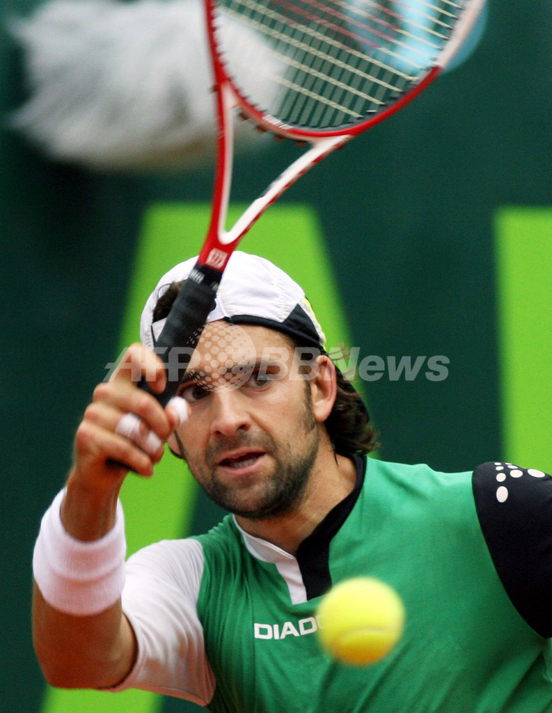 【デュッセルドルフ/ドイツ 25日 AFP】テニス、ARAGワールド・チーム・カップ(Arag World Team Cup)、レッド・グループ、ドイツvsチェコ。ドイツのフィリップ・コールシュライバー(Philipp Kohlschreiber)/アレクサンダー・バスケ(Alexander Waske)組は、第3戦でチェコのトマス・ベルディハ(Tomas Berdych)/レオシュ・フリエドル(Leos Friedl、左)組と対戦し、コールシュライバー/バスケ組がセットカウント2-1(6-4、6(2)-7、10-5)で勝利した。試合はドイツが2-1でチェコを破り、対戦成績を3勝0敗とし決勝進出を決めた。(c)AFP/PATRIK STOLLARZ