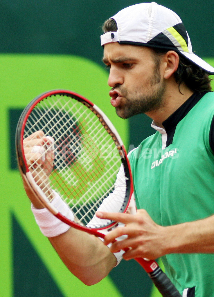 【デュッセルドルフ/ドイツ 25日 AFP】テニス、ARAGワールド・チーム・カップ(Arag World Team Cup)、レッド・グループ、ドイツvsチェコ。ドイツのフィリップ・コールシュライバー(Philipp Kohlschreiber)/アレクサンダー・バスケ(Alexander Waske)組は、第3戦でチェコのトマス・ベルディハ(Tomas Berdych)/レオシュ・フリエドル(Leos Friedl、左)組と対戦し、コールシュライバー/バスケ組がセットカウント2-1(6-4、6(2)-7、10-5)で勝利した。試合はドイツが2-1でチェコを破り、対戦成績を3勝0敗とし決勝進出を決めた。(c)AFP/PATRIK STOLLARZ
