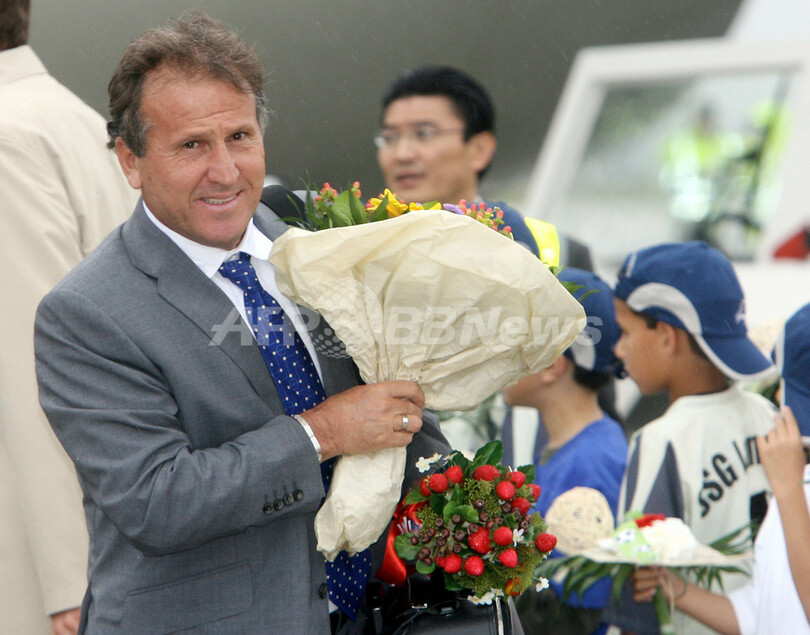 【フランクフルト/ドイツ 26日 AFP】6月9日から開幕する06サッカーW杯に出場する日本代表は、26日に開催地ドイツのフランクフルト国際空港に到着した。この後、日本代表は大会期間中のキャンプ地となるボンへ移動する。3大会連続3度目の出場となる日本代表は5月30日にドイツと6月4日にはマルタと親善試合を行い本大会に臨む。写真は、フランクフルト国際空港でファンの歓迎を受ける中田英寿(Hidetoshi Nakata)。(c)AFP/TOSHIFUMI KITAMURA