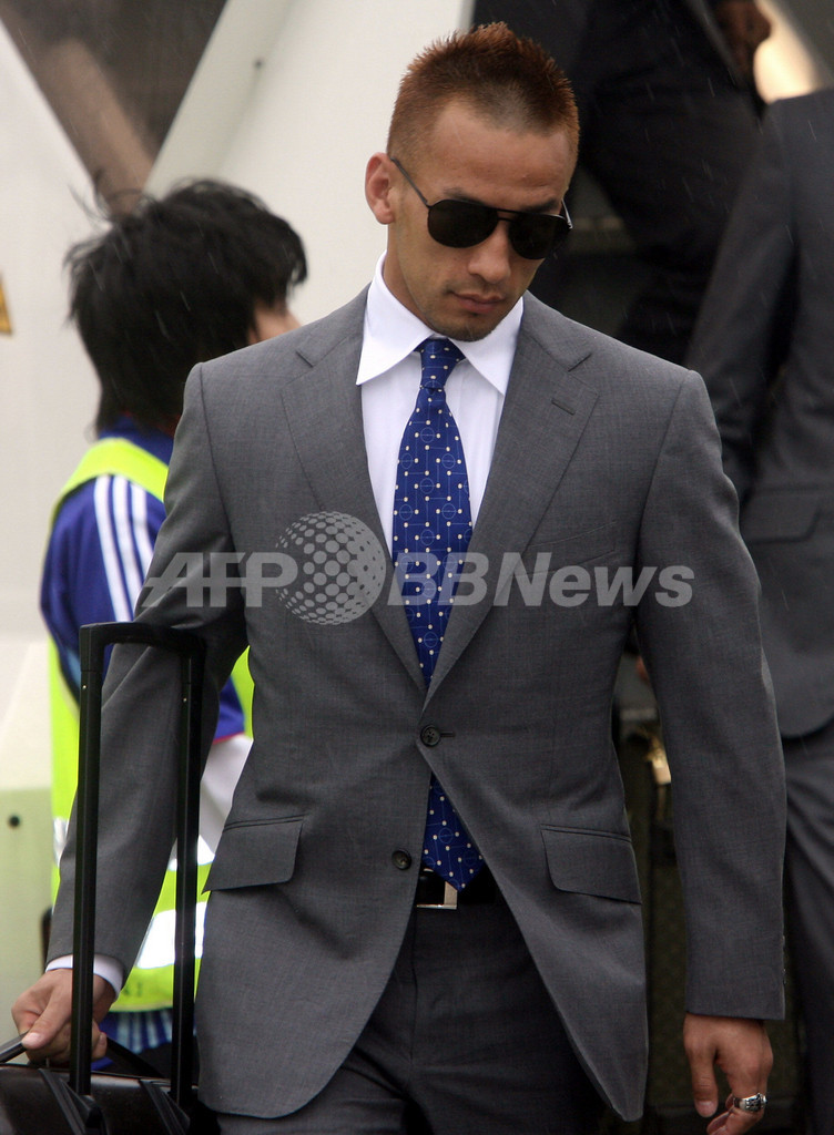 【フランクフルト/ドイツ 26日 AFP】6月9日から開幕する06サッカーW杯に出場する日本代表は、26日に開催地ドイツのフランクフルト国際空港に到着した。この後、日本代表は大会期間中のキャンプ地となるボンへ移動する。3大会連続3度目の出場となる日本代表は5月30日にドイツと6月4日にはマルタと親善試合を行い本大会に臨む。写真は、フランクフルト国際空港でファンの歓迎を受ける中田英寿(Hidetoshi Nakata)。(c)AFP/TOSHIFUMI KITAMURA