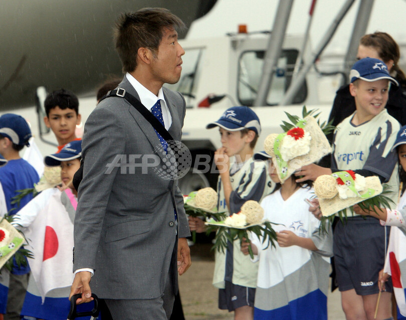 【フランクフルト/ドイツ 26日 AFP】6月9日から開幕する06サッカーW杯に出場する日本代表は、26日に開催地ドイツのフランクフルト国際空港に到着した。この後、日本代表は大会期間中のキャンプ地となるボンへ移動する。3大会連続3度目の出場となる日本代表は5月30日にドイツと6月4日にはマルタと親善試合を行い本大会に臨む。写真は、フランクフルト国際空港でファンの歓迎を受ける中田英寿(Hidetoshi Nakata)。(c)AFP/TOSHIFUMI KITAMURA