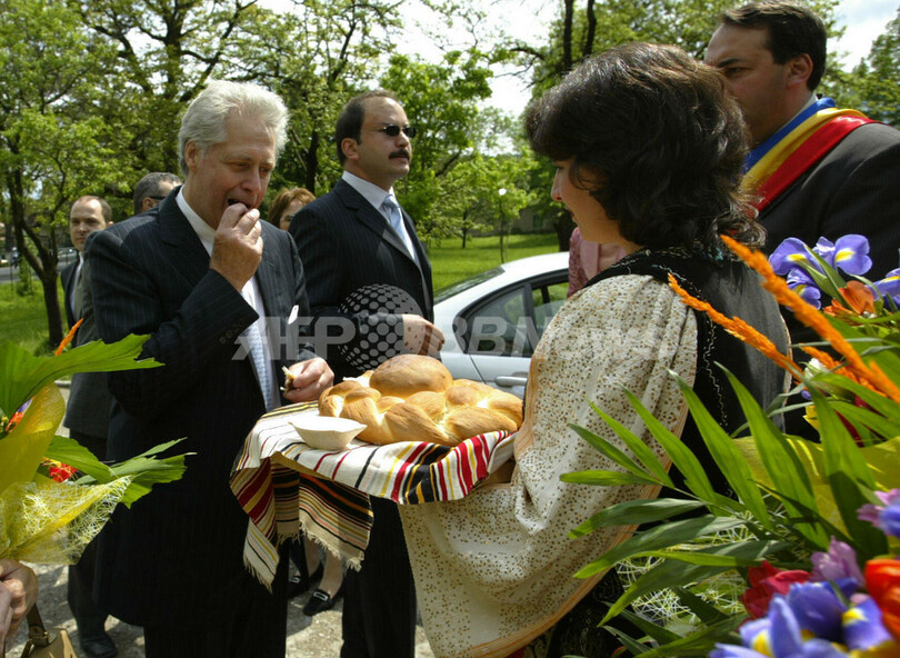 【ブラン/ルーマニア 27日 AFP】ニューヨーク在住の建築家ドミニク・フォン・ハプスブルグ氏(Dominic Von Habsburg)が26日、ドラキュラ城として知られる「ブラン城(Bran Castle)」の返還式に出席した。同氏は、17世紀後半から60年以上ルーマニアを支配したハプスブルグ王家の末裔で、イリアナ王女(Princess Ileana)の息子である。共産党政権により没収されていたドラキュラ伝説により国内で最も人気のある観光地である同城は、同政権の崩壊後、政府により同氏に返還されることになった。約2500万ドル(約28億円)の価値が予想される同城は1938年にメアリー女王(Queen Marie)から娘のイリアナ王女に遺贈された後、1948年に共産党員により没収されてから荒廃していた。写真は会見に出席したドミニク・フォン・ハプスブルグ氏。(c)AFP/DANIEL MIHAILESCU