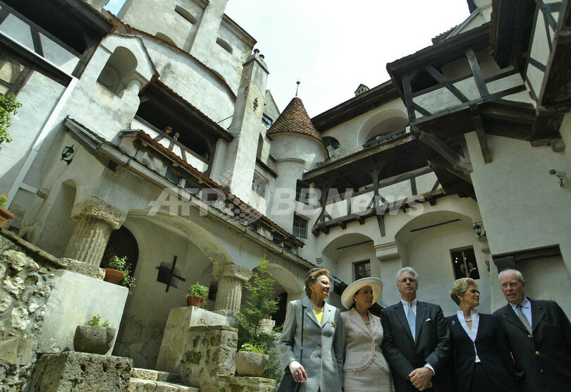 【ブラン/ルーマニア 27日 AFP】ニューヨーク在住の建築家ドミニク・フォン・ハプスブルグ氏(Dominic Von Habsburg)が26日、ドラキュラ城として知られる「ブラン城(Bran Castle)」の返還式に出席した。同氏は、17世紀後半から60年以上ルーマニアを支配したハプスブルグ王家の末裔で、イリアナ王女(Princess Ileana)の息子である。共産党政権により没収されていたドラキュラ伝説により国内で最も人気のある観光地である同城は、同政権の崩壊後、政府により同氏に返還されることになった。約2500万ドル(約28億円)の価値が予想される同城は1938年にメアリー女王(Queen Marie)から娘のイリアナ王女に遺贈された後、1948年に共産党員により没収されてから荒廃していた。写真は会見に出席したドミニク・フォン・ハプスブルグ氏。(c)AFP/DANIEL MIHAILESCU