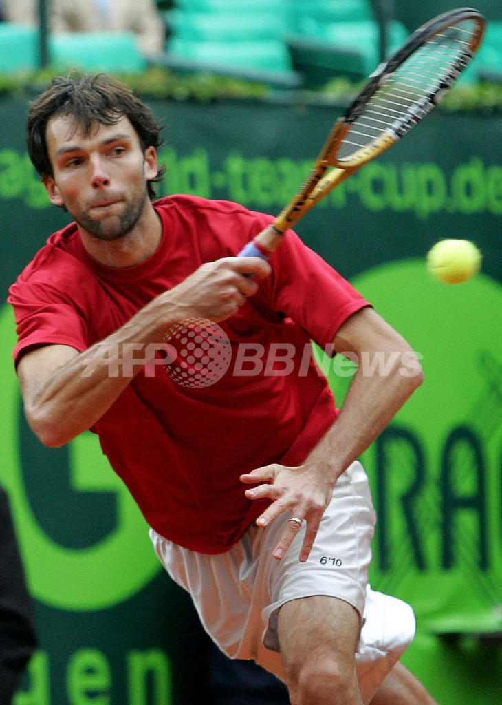【デュッセルドルフ/ドイツ 27日 AFP】テニス、ARAGワールド・チーム・カップ(Arag World Team Cup)決勝、クロアチアvsドイツ。クロアチアのイヴォ・カルロビッチ(Ivo Karlovic)は、第1試合でドイツのアレクサンダー・バスケ(Alexander Waske)をセットカウント2-0(7-6、6-4)のストレートで降した。試合はクロアチアが2-1で勝利を収め大会初優勝を飾った。(c)AFP/JUERGEN SCHWARZ