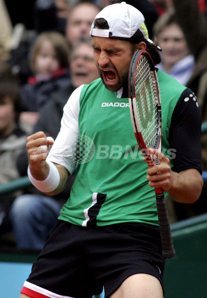 【デュッセルドルフ/ドイツ 27日 AFP】テニス、ARAGワールド・チーム・カップ(Arag World Team Cup)決勝、クロアチアvsドイツ。クロアチアのイヴォ・カルロビッチ(Ivo Karlovic)は、第1試合でドイツのアレクサンダー・バスケ(Alexander Waske)をセットカウント2-0(7-6、6-4)のストレートで降した。試合はクロアチアが2-1で勝利を収め大会初優勝を飾った。(c)AFP/JUERGEN SCHWARZ