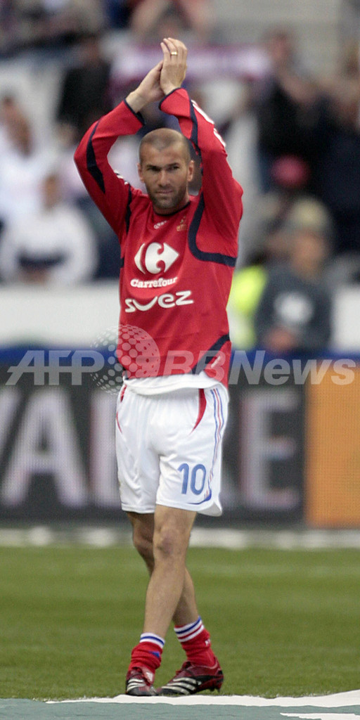 【サンドニ/フランス 27日 AFP】サッカー・親善試合、フランスvsメキシコ。前半45分に先制ゴールを奪ったフランスのフローラン・マルーダ(Florent Malouda、中)はチームメイトのジネディーヌ・ジダン(Zinedine Zidane、左)、パトリック・ビエラ(Patrick Vieira、右2)、ダビド・トレゼゲ(David Trezeguet、右)から祝福を受ける。試合はこれが決勝点となりフランスが1-0でメキシコに勝利した。6月9日に開幕する06サッカーW杯に出場するフランスはグループGでスイス、韓国、トーゴと対戦、グループDに所属するメキシコはイラン、アンゴラ、ポルトガルと対戦する。(c)AFP/PASCAL PAVANI