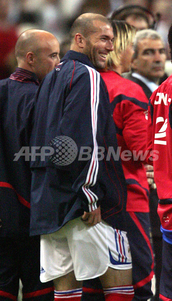 【サンドニ/フランス 27日 AFP】サッカー・親善試合、フランスvsメキシコ。前半45分に先制ゴールを奪ったフランスのフローラン・マルーダ(Florent Malouda、中)はチームメイトのジネディーヌ・ジダン(Zinedine Zidane、左)、パトリック・ビエラ(Patrick Vieira、右2)、ダビド・トレゼゲ(David Trezeguet、右)から祝福を受ける。試合はこれが決勝点となりフランスが1-0でメキシコに勝利した。6月9日に開幕する06サッカーW杯に出場するフランスはグループGでスイス、韓国、トーゴと対戦、グループDに所属するメキシコはイラン、アンゴラ、ポルトガルと対戦する。(c)AFP/PASCAL PAVANI