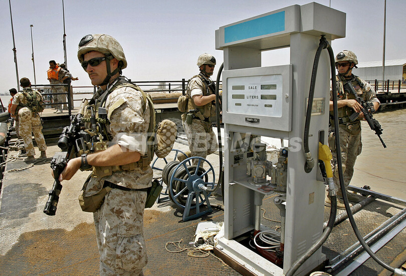 【ウムカスル/イラク 28日 AFP】バグダッド南のウムカスル(Umm Qasr)港をイラク復興管理室(Iraq Reconstruction Management Office, IRMO)のDaniel Speckhard米大使が訪問した。ウムカスル港は、戦争の傷跡が深いイラクに必要な多くの人道支援物資を供給するための生命線として考えられている。写真は27日、ウムカスル港の外に駐車中の英国陸軍ジープのスペアタイヤに結ばれたラクダのぬいぐるみ。(c)AFP/ALI AL-SAADI