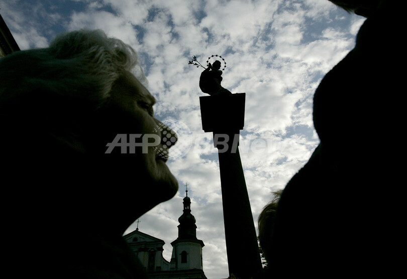 【クラクフ/ポーランド 28日 AFP】4日間の日程でポーランド訪問中のローマ法王ベネディクト16世(Pope Benedict XVI)は27日、クラクフ(Krakow)に到着した。ポーランド滞在中、前法王ヨハネ・パウロ2世(John Paul II)のゆかりの地や、旧ナチスの強制収容所跡があるアウシュビッツ・ビルケナウ(Auschwitz-Birkenau)も訪れる。写真はクラクフのヴァヴェル(Wawel)城へ向かうベネディクト16世を沿道で待つ巡礼者。(c)AFP/JOE KLAMAR