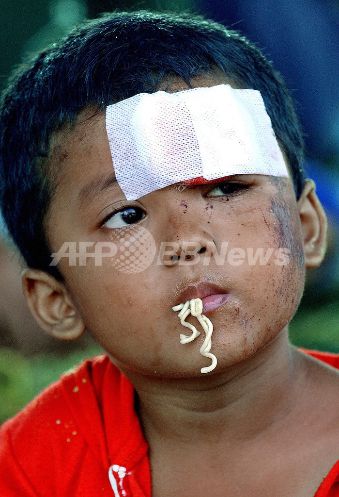 ニュース 社会 <ジャワ島中部地震>死者3300人以上 - インドネシア 2006年5月28日 14:40 発信地:インドネシア [ アジア・オセアニア インドネシア ] このニュースをシェア ‹ › ❮ 1/8 ❯ 写真はジョクジャカルタの一時避難施設で、朝食に出された麺を食べる負傷した少年。(c)AFP/Bay ISMOYO 画像作成中 ! 【ジョクジャカルタ/インドネシア 28日 AFP】インドネシアのジャワ(Java)島を襲った強い地震から一夜が明けたジョクジャカルタ(Yogyakarta)で28日、レスキュー隊による生存者の捜索が続けられた。地震の規模はマグニチュード6.2、3300人以上が死亡し、20万人が家を失った。写真はジョクジャカルタの一時避難施設で、朝食に出された麺を食べる負傷した少年。(c)AFP/Bay ISMOYO 社会 一覧へ> メディア・報道関係・法人の方向け 写真・動画 購入のお問合せ>