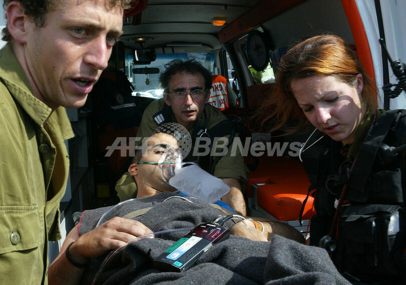 【ハイファ/イスラエル 29日 AFP】イスラエルは28日、同国領内へのロケット弾攻撃に対する報復措置として、レバノンの複数の軍事目標を空爆した。武装兵2人が死亡し、両国間の緊張が高まっている。越境攻撃の続くイスラエル北部の都市キリヤットシュモナ(Kiryat Shmona)とナハリヤ(Nahariya)では、全住民に避難勧告が出された。イスラエル側はこれらの攻撃をイスラム系過激派組織ヒズボラ(Hezbollah)によるものと非難している。写真は沿岸の都市ハイファ(Haifa)の病院にヘリコプターで搬送されたイスラエル軍の負傷兵。(c)AFP/RONI SCHUTZER