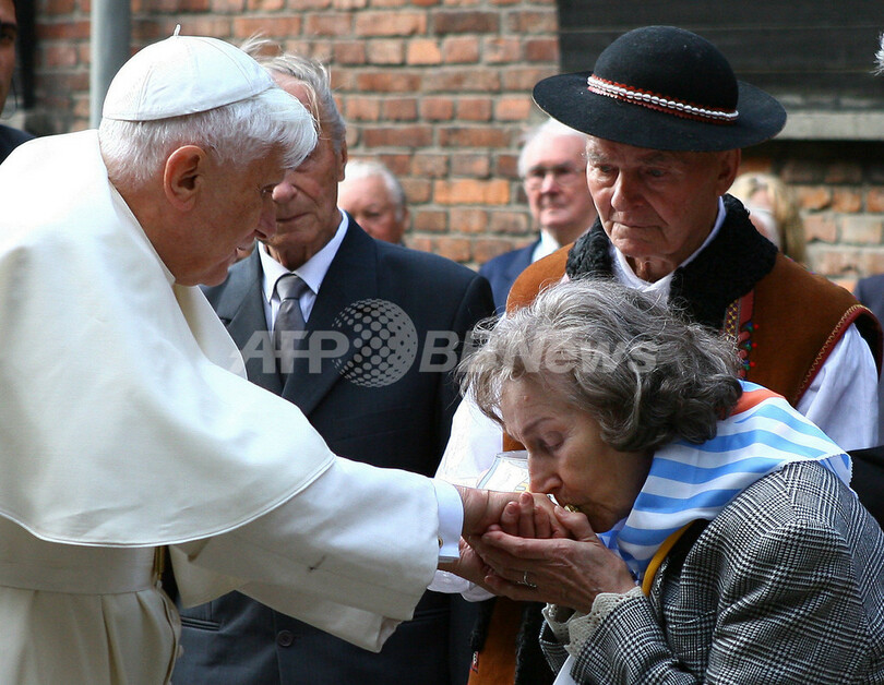 ニュース ライフ ローマ法王、強制収容所の「死の壁」前で祈りを捧げる - ポーランド 2006年5月29日 3:13 発信地:ポーランド [ ヨーロッパ ポーランド ] このニュースをシェア ‹ › ❮ 4/9 ❯ 写真は、強制収容所の第11ブロック中庭にある死の壁の前で、ローマ法王の手にキスをするポーランド人生存者。(c)AFP/VINCENZO PINTO 画像作成中 ! 【オシフィエンチム/ポーランド 29日 AFP】ローマ法王ベネディクト16世(Pope Benedict XVI)は28日、オシフィエンチム(Oswiecim)にあるナチスのアウシュビッツ(Auschwitz)強制収容所で犠牲者に祈りを捧げ、4日間のポーランド訪問日程を終えた。写真は、強制収容所の第11ブロック中庭にある死の壁に到着したローマ法王。(c)AFP/ALBERTO PIZZOLI ライフ 一覧へ> メディア・報道関係・法人の方向け 写真・動画 購入のお問合せ>