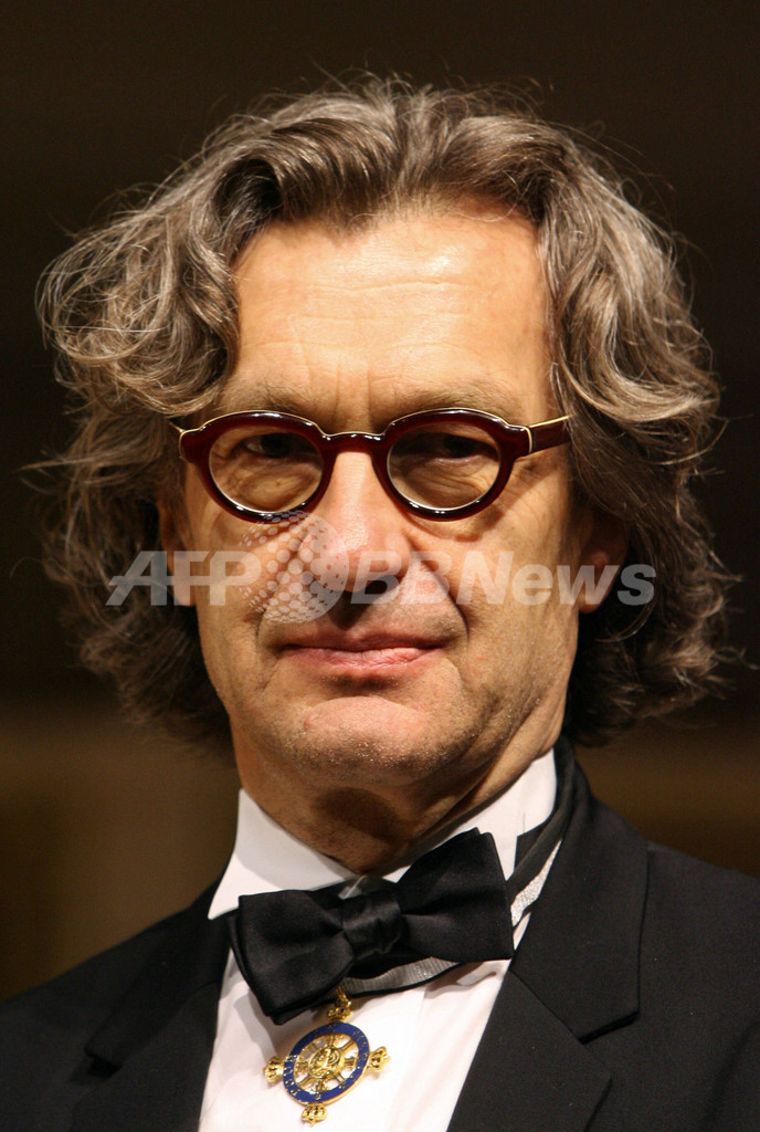 【ベルリン/ドイツ 30日 AFP】ベルリンで29日、映画監督のヴィム・ヴェンダース(Wim Wenders)氏が「プール・ル・メリット勲章(Order Pour le Merite for Science and Arts)」を受章した。プール・ル・メリット勲章は第一次世界大戦以前、プロイセンにおける軍事上の最高勲章であったが、1952年に平和的分野が創設され、科学芸術における業績に対して賞が贈られるようになった。写真は29日、受章後に笑顔を見せるヴィム・ヴェンダース監督とドナータ(Donata)夫人。(c)AFP/MARCUS BRANDT