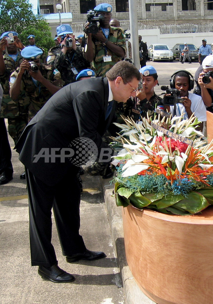 ニュース 政治・経済 国連事務総長特別代理、内戦犠牲者を慰霊 - リベリア 2006年5月30日 1:43 発信地:リベリア [ アフリカ リベリア ] このニュースをシェア 写真は国連旗の下に献花するドス氏。(c)AFP 【モンロビア/リベリア 29日 AFP】「国連平和維持要員の国際デー(International Day of UN Peacekeeping)」の29日、アラン・ドス(Alan Doss)国連事務総長特別代表は首都モンロビア(Monrovia)を訪れ、リベリア内戦の犠牲者を慰霊した。現在リベリアには国連平和維持部隊の隊員約1万7千人が駐屯している。写真は国連旗の下に献花するドス氏。(c)AFP 政治・経済 一覧へ> メディア・報道関係・法人の方向け 写真・動画 購入のお問合せ>