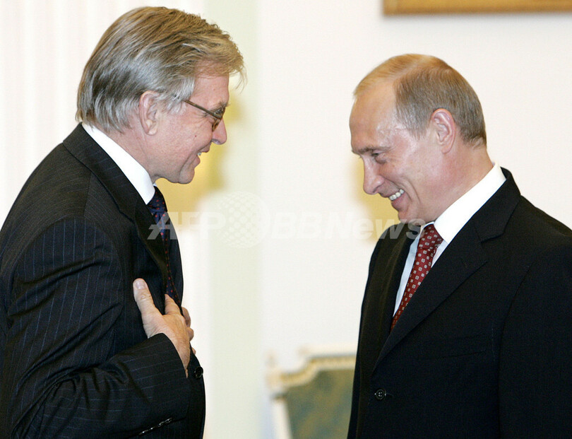 【モスクワ/ロシア 30日 AFP】欧州評議会議員会議(Parliamentary Assembly of the Council of Europe、PACE)のRene van der Linden代表らは29日、モスクワのクレムリン宮殿(Kremlin)でウラジーミル・プーチン(Vladimir Putin)大統領と会談した。ロシアが欧州評議会の議長国を務める期間の行動計画などについて話し合う予定。写真は、クレムリン宮殿で握手するプーチン大統領(右)とLinden代表。(c)AFP/MAXIM MARMUR