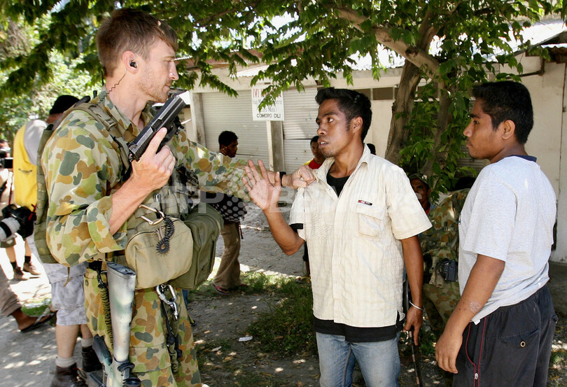 ニュース 戦争・紛争 散発的な衝突続く首都ディリ - 東ティモール 2006年5月30日 14:31 発信地:東ティモール [ アジア・オセアニア 東ティモール ] このニュースをシェア ‹ › ❮ 13/13 ❯ 写真はディリで30日、反対勢力の武装解除に当たる豪軍兵士。(c)AFP/William WEST 画像作成中 ! 【ディリ/東ティモール 30日 AFP】首都ディリ(Dili)周辺では依然として武装集団による抗争が続いている。首都中心部と空港を結ぶ主要道路の東西から散発的な銃声が響いている。写真はディリで29日、武装集団の衝突により炎上する車両の横を通過する豪軍の装甲兵員輸送車(APC)。(c)AFP/William WEST 戦争・紛争 一覧へ> メディア・報道関係・法人の方向け 写真・動画 購入のお問合せ>