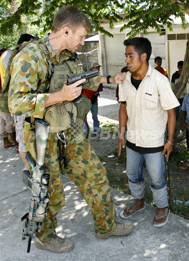 ニュース 戦争・紛争 散発的な衝突続く首都ディリ - 東ティモール 2006年5月30日 14:31 発信地:東ティモール [ アジア・オセアニア 東ティモール ] このニュースをシェア ‹ › ❮ 12/13 ❯ 写真はディリで30日、反対勢力の武装解除に当たる豪軍兵士。(c)AFP/William WEST 画像作成中 ! 【ディリ/東ティモール 30日 AFP】首都ディリ(Dili)周辺では依然として武装集団による抗争が続いている。首都中心部と空港を結ぶ主要道路の東西から散発的な銃声が響いている。写真はディリで29日、武装集団の衝突により炎上する車両の横を通過する豪軍の装甲兵員輸送車(APC)。(c)AFP/William WEST 戦争・紛争 一覧へ> メディア・報道関係・法人の方向け 写真・動画 購入のお問合せ>
