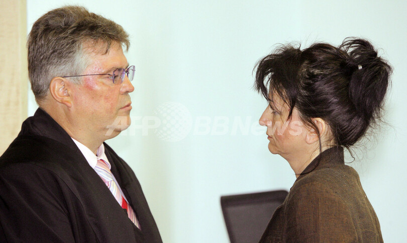 【フランクフルト/ドイツ 30日 AFP】フランクフルト・オーデル(Frankfurt/Oder)の裁判所で30日、隠されていた新生児9人の遺体が庭から発見されたザビーネ・H(Sabine H.)被告(40)を殺人罪に問う裁判が行われ、検察当局は終身刑を求刑した。ザビーネ被告は新生児を死に至るまで放置し、遺体を植木鉢やバケツ、未使用の水槽に隠したとされる。元歯科衛生士の被告は1988年から1998年の間に、男児2人、女児7人を出産している。写真は裁判の開始を待つザビーネ被告。(c)AFP/PEER GRIMM