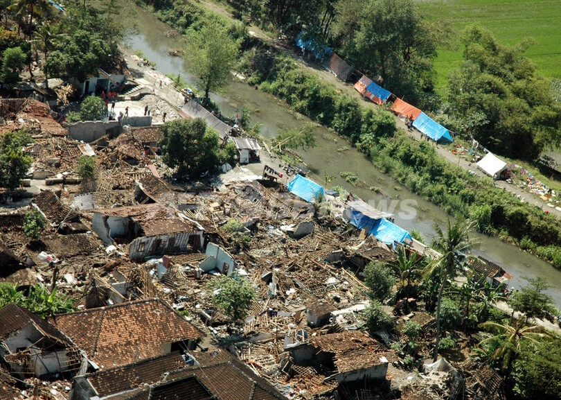 ニュース 社会 <ジャワ島中部地震>救援体制おおむね整う - インドネシア 2006年5月30日 22:13 発信地:インドネシア [ アジア・オセアニア インドネシア ] このニュースをシェア ‹ › ❮ 6/8 ❯ 写真はジャワ島中部のジョクジャカルタ(Jogyakarta)で30日、倒壊した家々と仮設テントの航空写真。(c)AFP/AGUS SUPARTO 画像作成中 ! 【ジョクジャカルタ/インドネシア 30日 AFP】国連(UN)によると、15万人が家を失い、5000人以上が犠牲となったジャワ島中部地震で、救援体制はおおむね整ったとのこと。写真はジャワ島中部のジョクジャカルタ(Jogyakarta)で30日、地震の被害を受けたプラオサン寺院(Plaosan temple)の航空写真。(c)AFP/AGUS SUPARTO 社会 一覧へ> メディア・報道関係・法人の方向け 写真・動画 購入のお問合せ>