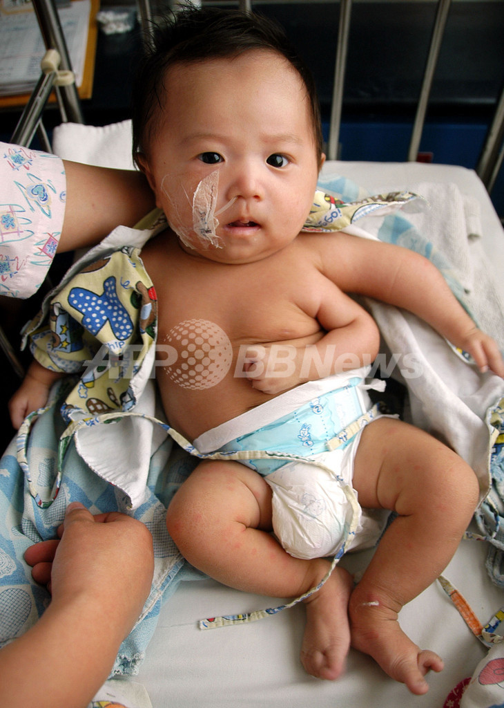 ニュース ライフ 腕が3本ある赤ちゃん、除去手術を計画 - 中国 2006年5月30日 21:46 発信地:中国 [ 中国・台湾 中国 ] このニュースをシェア 写真は30日、上海小児医療センターのベッドに寝る男の子。(c)AFP 【上海/中国 30日 AFP】医者たちは、腕が3本の状態で生まれた安徽省出身の生後2か月の男の子に、腕1本を除去する手術を行う計画を立てている。写真は30日、上海小児医療センターのベッドに寝る男の子。(c)AFP ライフ 一覧へ> メディア・報道関係・法人の方向け 写真・動画 購入のお問合せ>