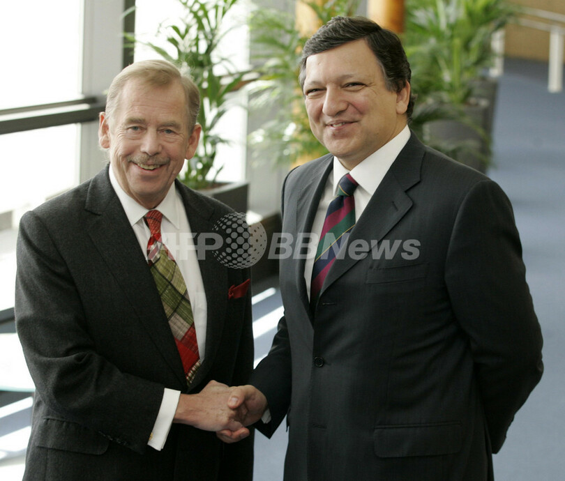 【ブリュッセル/ベルギー 30日 AFP】ブリュッセル(Brussels)の欧州連合(EU)本部で30日、宗教指導者を集めた基本権と相互尊重に関する会議が開催された。ジョゼ・マヌエル・バローゾ(Jose Manuel Barroso)EC委員長は、EU加盟25か国における保護貿易主義の懸念が高まる中、加盟国に対し「国家主義の誇張」を行わないよう警告した。写真は会議に出席するチベットの精神的指導者、ダライ・ラマ(Dalai Lama)14世とバローゾEC委員長(右)。(c)AFP/GERARD CERLES